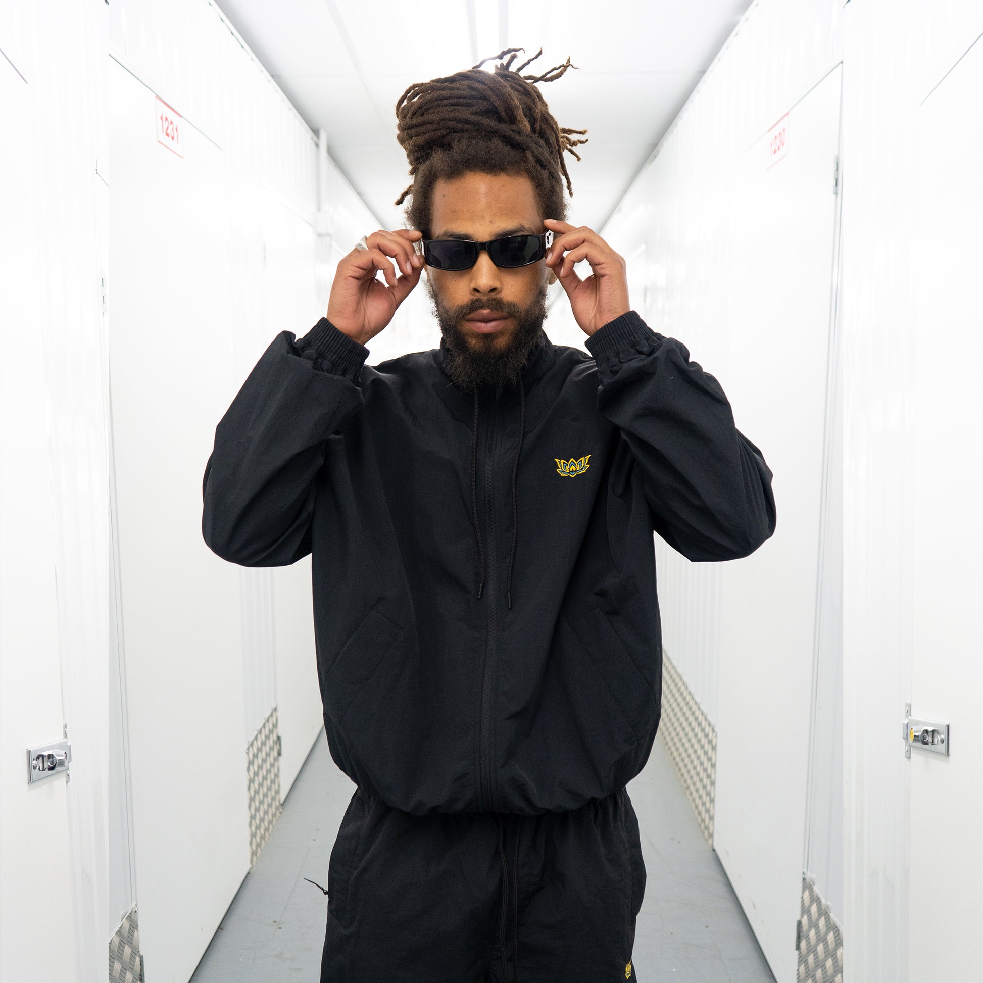 NYLON LOTUS TRACK TOP - BLACK